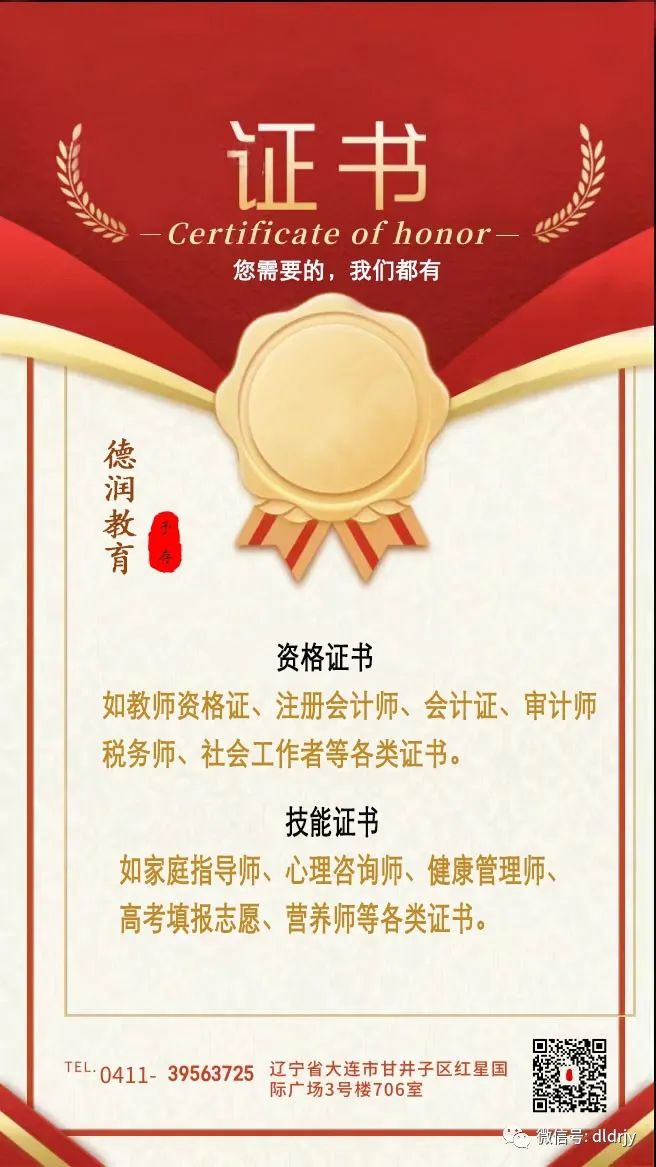 关注“大连德润教育咨询有限公司”,德润教育职业证书与培训