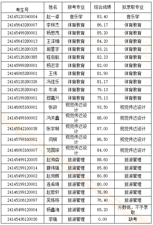 长治学院2024年退役大学生士兵专升本职业技能综合考查成绩及拟录取名单