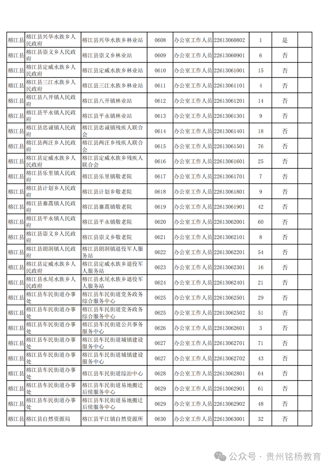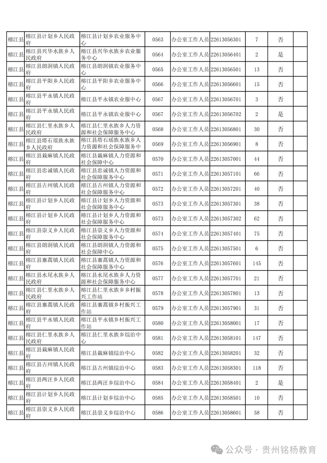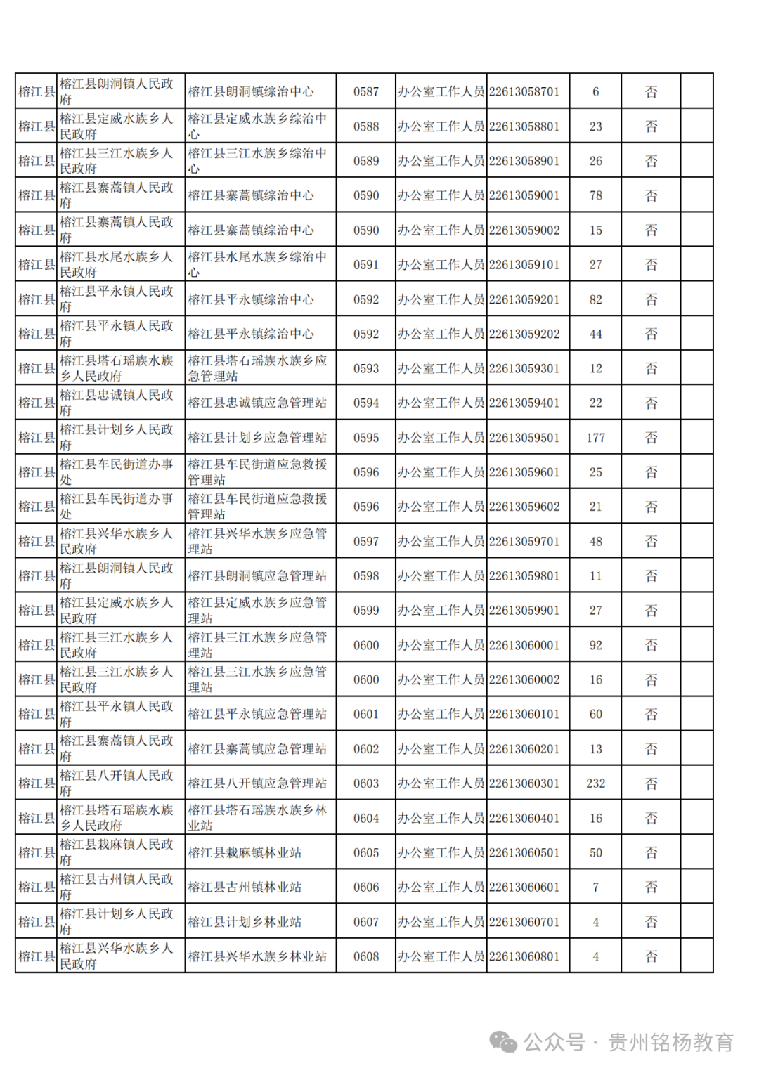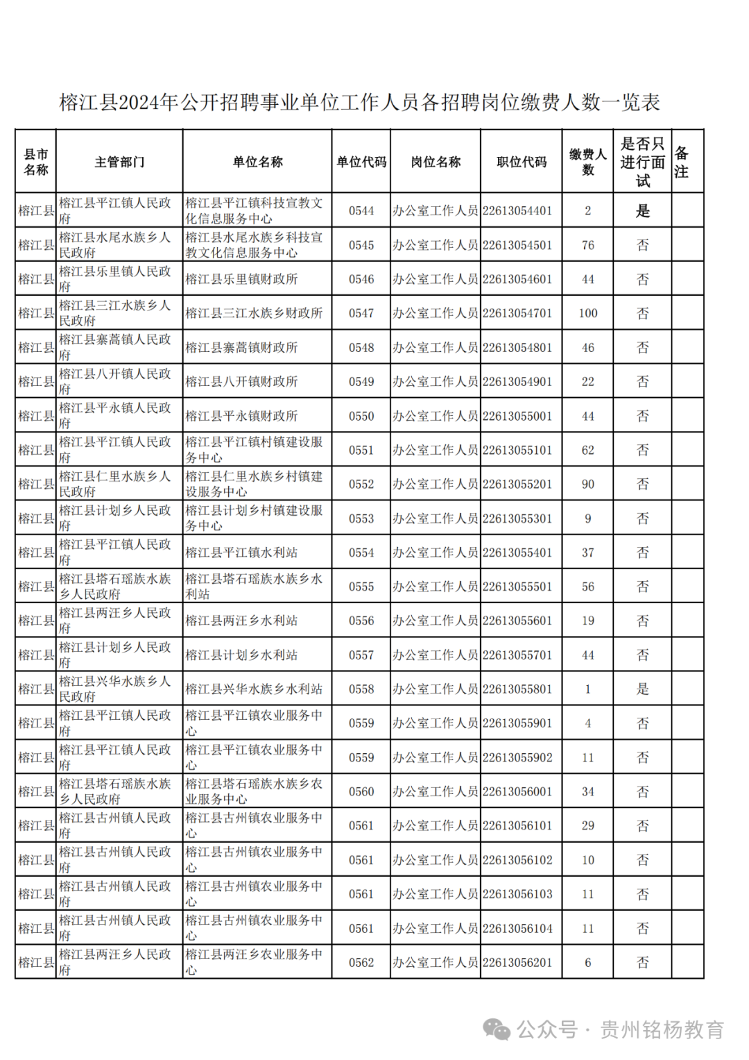 关于公布榕江县事业单位2024年公开招聘工作人员各岗位报名情况的通知