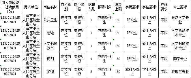 为进一步满足金山区卫生健康事业发展需要,根据《上海市事业单位公开招聘人员办法》(沪人社规〔2019〕15号),按照公开、平等、竞争、择优的原则,金山区部分卫生健康事业单位面向社会公开招聘卫生专业技术人员。现将有关事项公告如下: