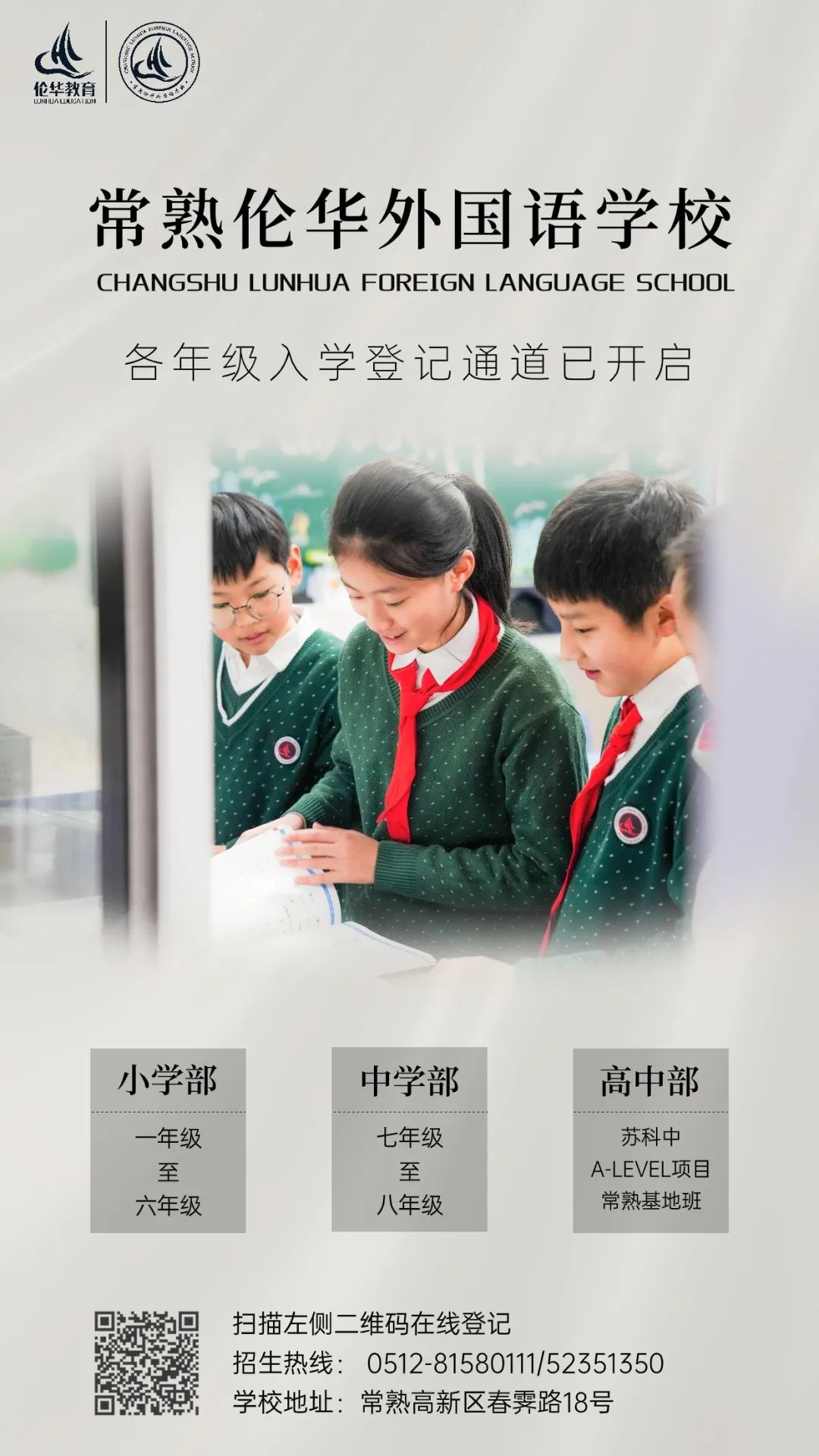 常熟伦华外国语学校(简称常国CLFLS)由常熟高新区投资兴建,由博慧教育的倡导者与实践者、伦华教育创始人、全国知名特级教师曹伦华先生任总校长。