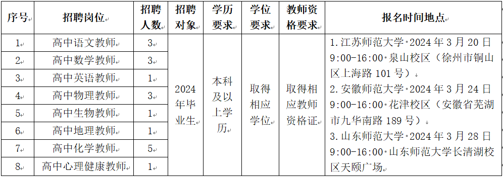 丰县中学现已整体搬迁至新城区风景秀丽的飞龙湖畔,确立了建设“生态和美 情智共生”的高品质特色高中的办学目标。县委县政府大力支持丰中的发展,给予了学校教师招聘的自主权,今年公开自主招聘编制内教师18名,具体如下:
