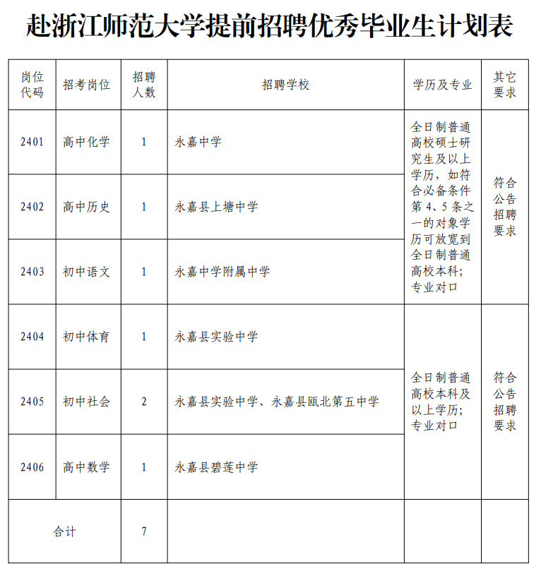 为了进一步优化教师队伍结构,促进教育持续健康发展,根据《浙江省事业单位公开招聘人员暂行办法》(浙人才〔2007〕184号)、《关于进一步规范公办学校教师公开招聘工作的意见》(温教人〔2015〕22号)等文件精神,经研究决定,赴浙江师范大学提前招聘2024届优秀毕业生。现将有关事项公告如下: