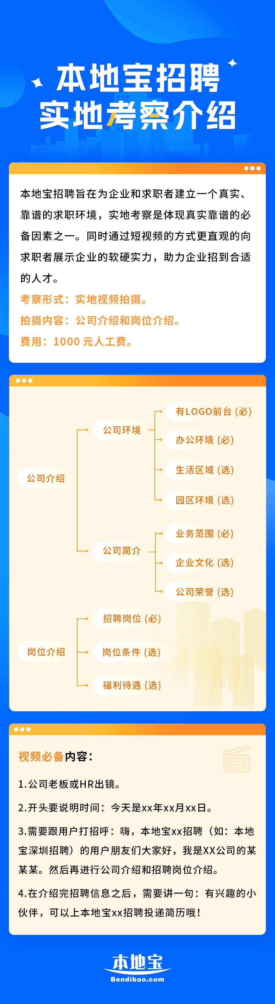 答:属于前4类企业不需要实地考察可以直接免费入驻,只有部分企业才需要实地考察,因为这些企业没法验证靠谱性,考察产生人力劳动,所以需要收取这个费用,考察之后会有视频的方式展示公司的招聘需求,同样也是为了让求职者真切的看到招聘单位的具体情况。