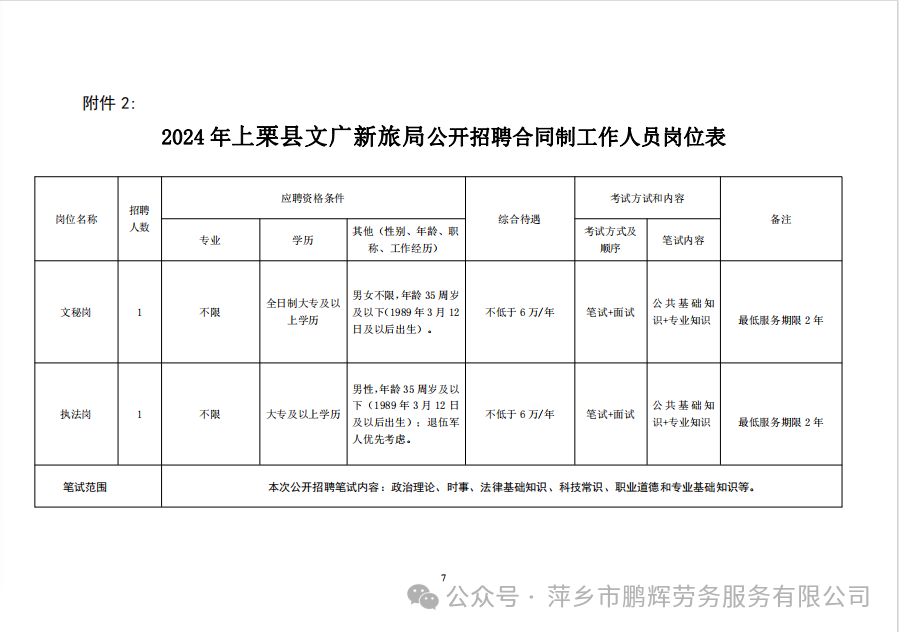 附件2:《2024年上栗县文广新旅局公开招聘合同制工作人员岗位表》。