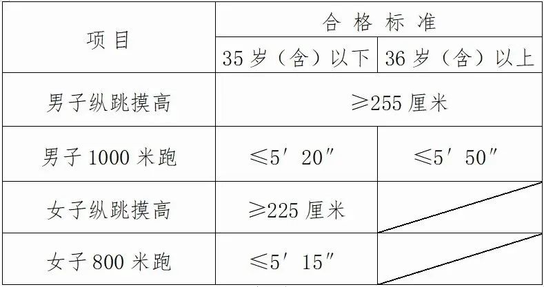 1988年3月1日(含)以后出生的考生,执行35岁(含)以下体能测试标准;1988年2月29日(含)以前出生的考生,执行36岁(含)以上体能测试标准。