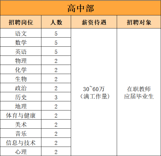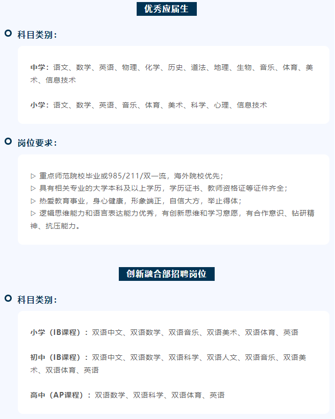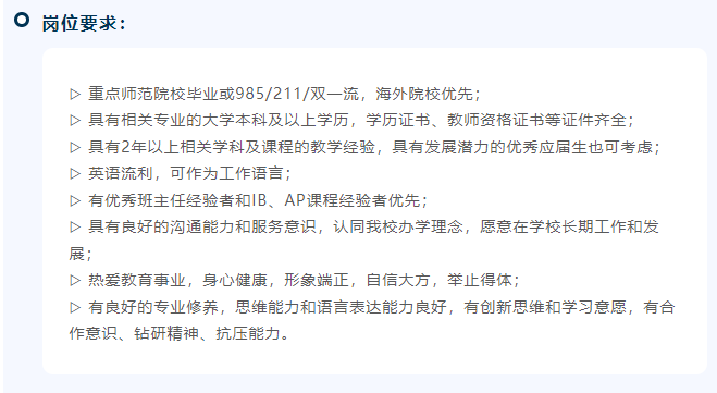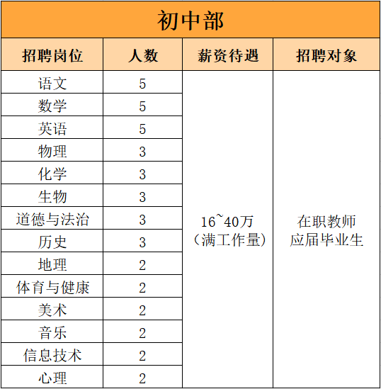 从招聘岗位来看,学校此次招聘主要招收初中部优秀教师。