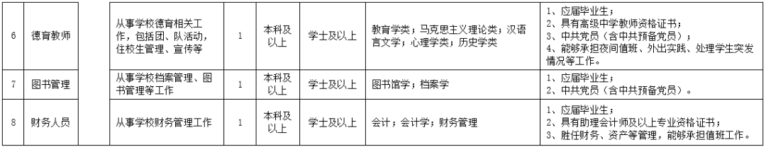 (1)岗位一(4人):35岁以下(1988年3月1日以后出生),中共党员(含预备党员),全日制本科及以上学历。有党务工作、社区或社会工作经验者优先;