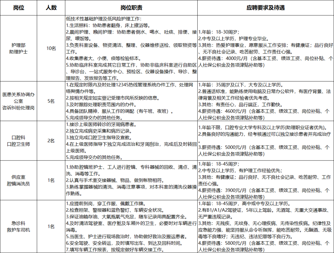 因工作需要,海南民悦人力资源有限公司储备天涯区医院编外工作人员19名。岗位信息具体如下: