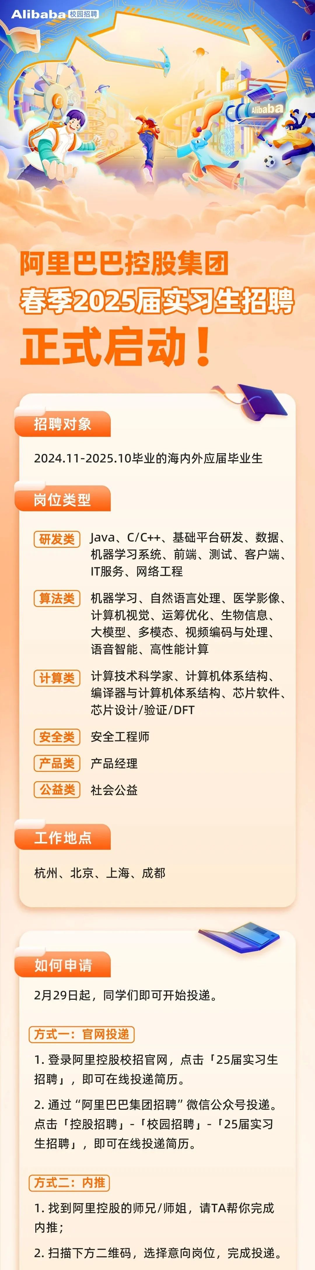 招聘届数:大陆学生要求毕业时间在 2024/11/01 至 2025/10/31;海外学生要求毕业时间在 2024/11/01 至 2025/10/31