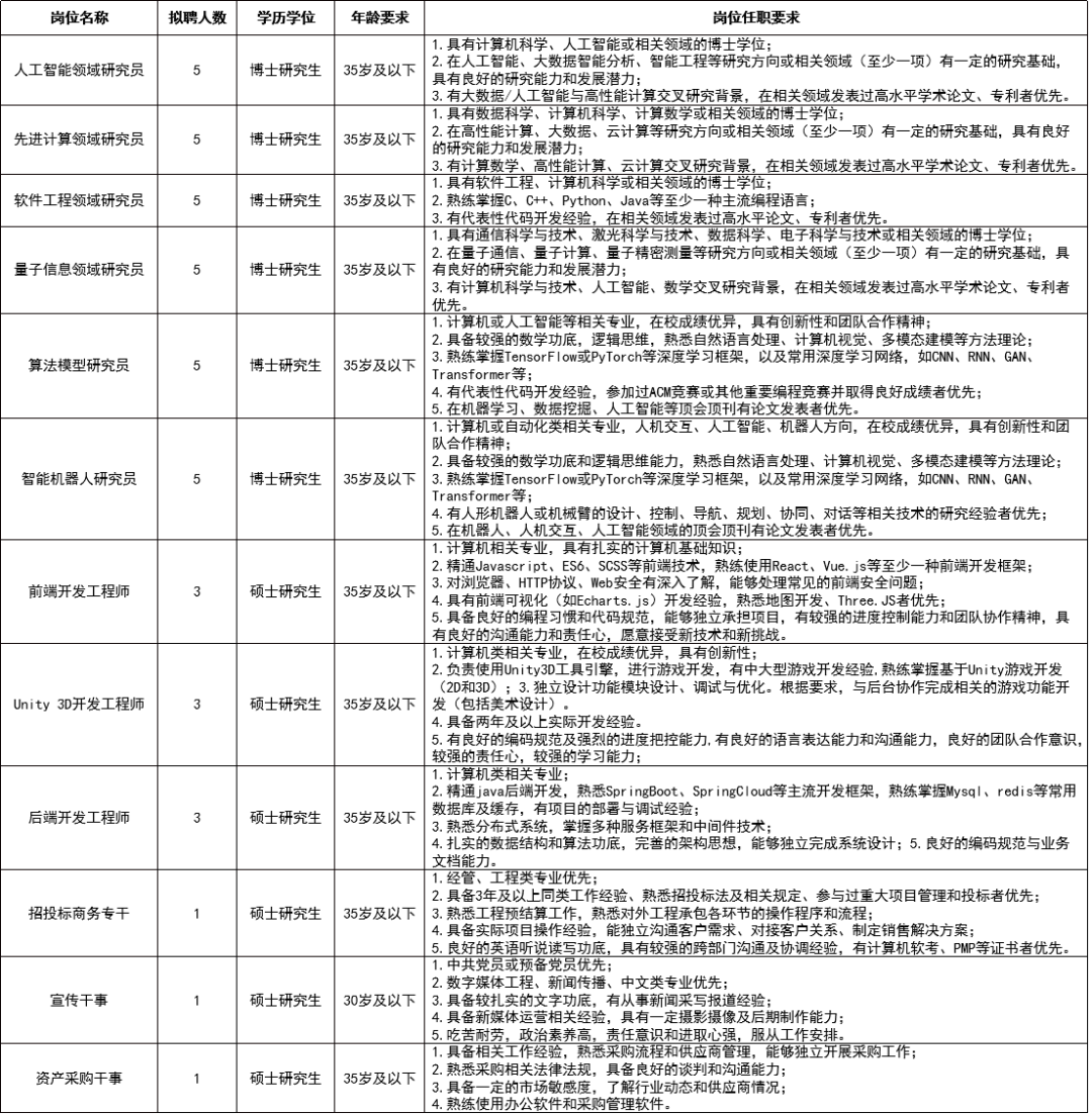 招聘岗位、计划及要求