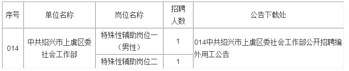 上虞区机关事业单位面向社会公开招聘编外用工,具体见下: