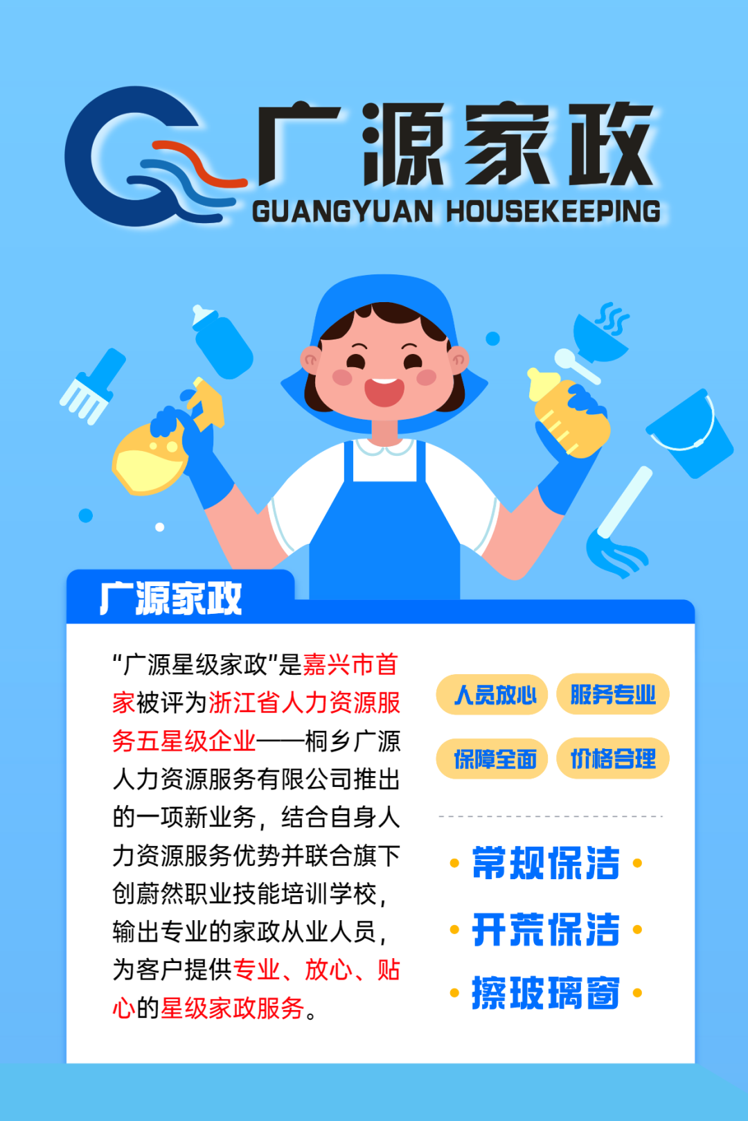 1.男女不限,35-55周岁,有1年以上家政保洁工作经验;