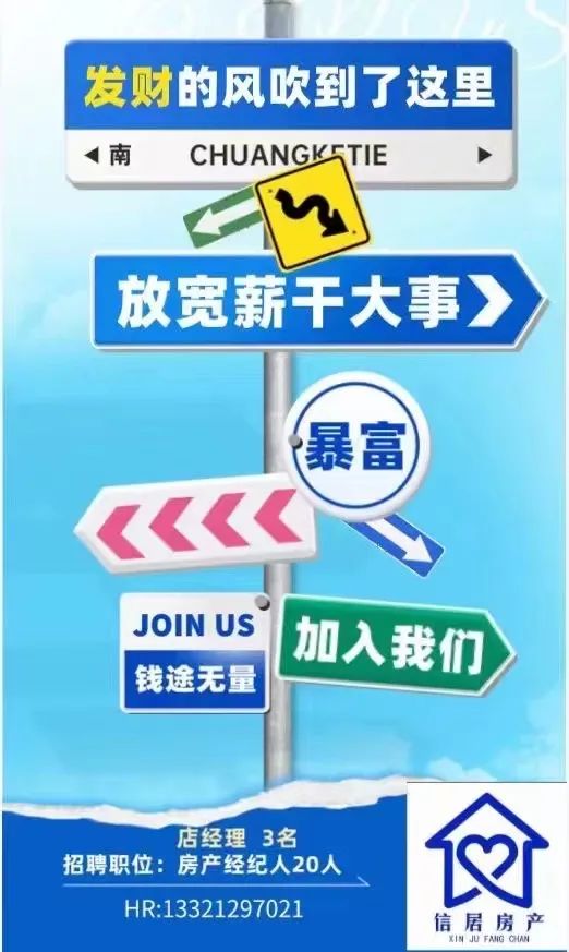 信居房产招聘底薪+高额提成+月休6天+带薪培训+节日福利+旅游团建工作时间 上午8:30-12:00 下午14:30-18:30万事俱备,职等你来,热烈欢迎找工作的你,快来加入我们吧联系电话:13321297021 (信居房产:13321297021)