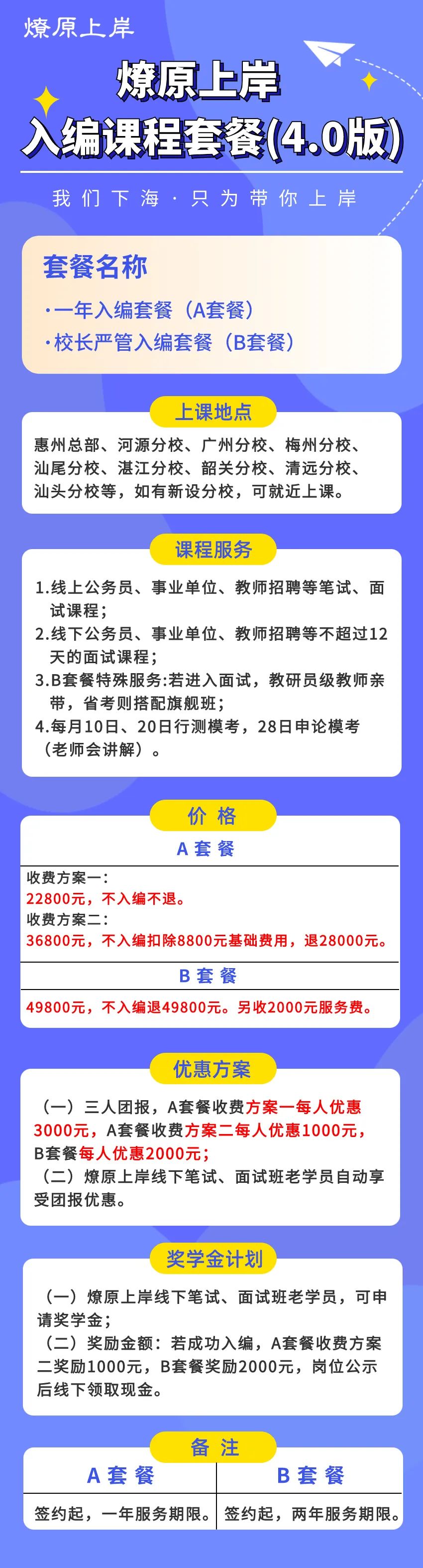 (二)奖励金额:若成功入编,A套餐收费方案二奖励1000元,B套餐奖励2000元,岗位公示后线下领取现金。