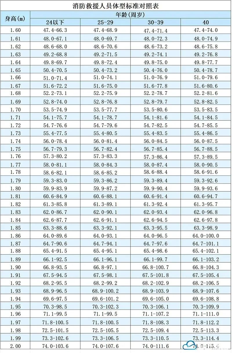 (五)体能达标,身心健康,无纹身,符合《消防员职业健康标准》(GBZ 221-2009)体检标准,体型达标(附件1)。
