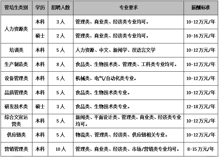 1、薪资结构:基本工资+管培生津贴+绩效奖金+工龄工资+加班费+年终奖金+各类补贴;