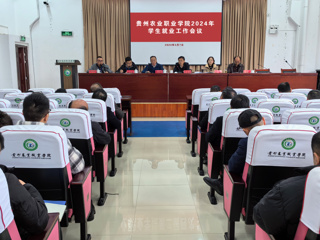 近日,贵州农业职业学院召开了2024届毕业生就业工作会议,学院党委书记刘玉国,党委副书记黄华,党委委员、副院长韩昌权、许劲松,党委委员、组织人事部部长肖连军,相关职能部门及各系负责人、招生就业处就业专员、2024届毕业生辅导员及班主任参加会议,会议由韩昌权主持。