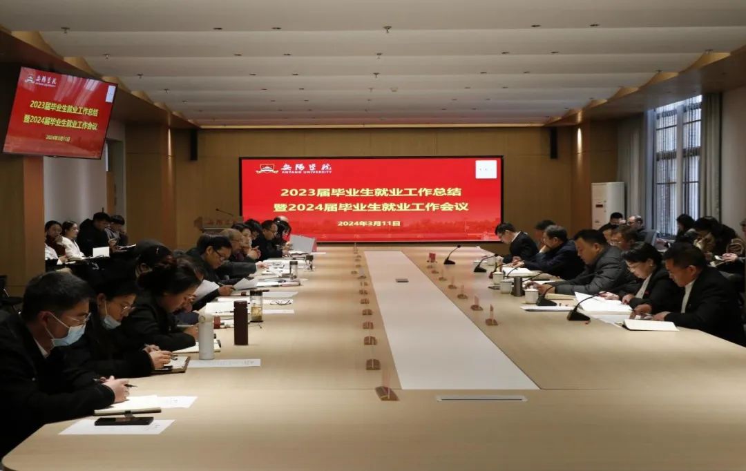 2024年3月11日下午,我校在图书馆第六会议室召开安阳学院2023届毕业生就业工作总结暨2024届毕业生就业工作会议。各二级学院党总支书记、院长、副书记、毕业班辅导员代表以及招生就业处就业指导服务中心全员参加会议。党委书记孟伟,党委副书记、校长单伟龙,副校长王爱民,党委副书记、副校长张宇,副校长张明选,校长助理姚林茹出席会议。会议由招生就业处副处长任波主持。