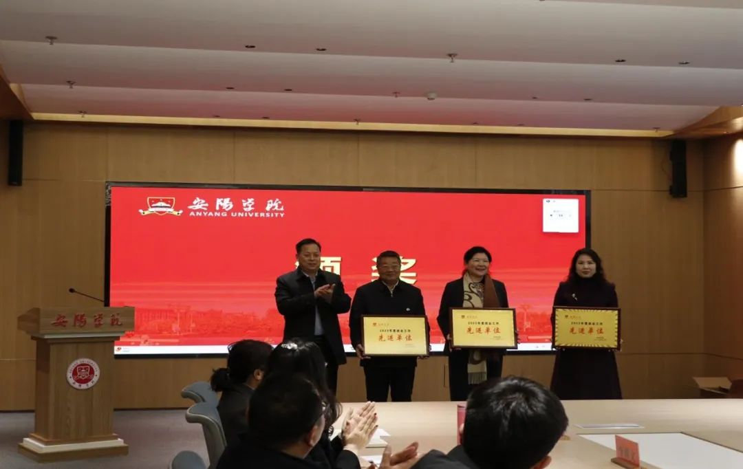随后,招生就业处处长杨歌宣读了《安阳学院关于表彰2023年度就业工作先进单位和先进个人的决定》。孟伟、单伟龙分别为获奖单位及个人进行了颁奖。