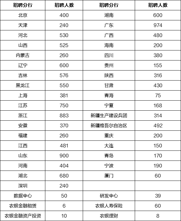 *各省招聘条件有所区别,具体详见各分行招聘公告。