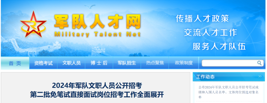 为更好延揽地方优秀人才服务强军事业,根据《军队文职人员公开招考暂行规定》及有关政策规定,中央军委政治工作部将组织2024年军队文职人员公开招考第二批免笔试直接面试岗位招考工作。