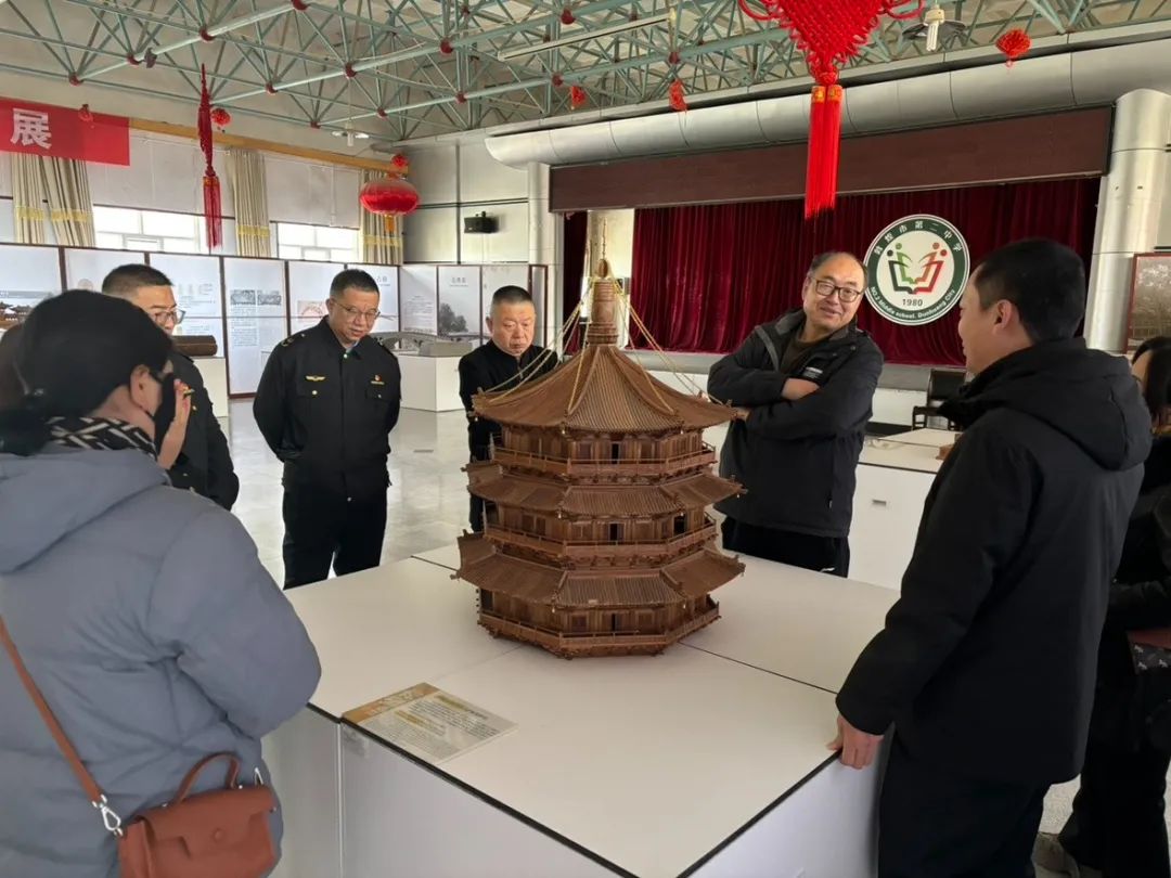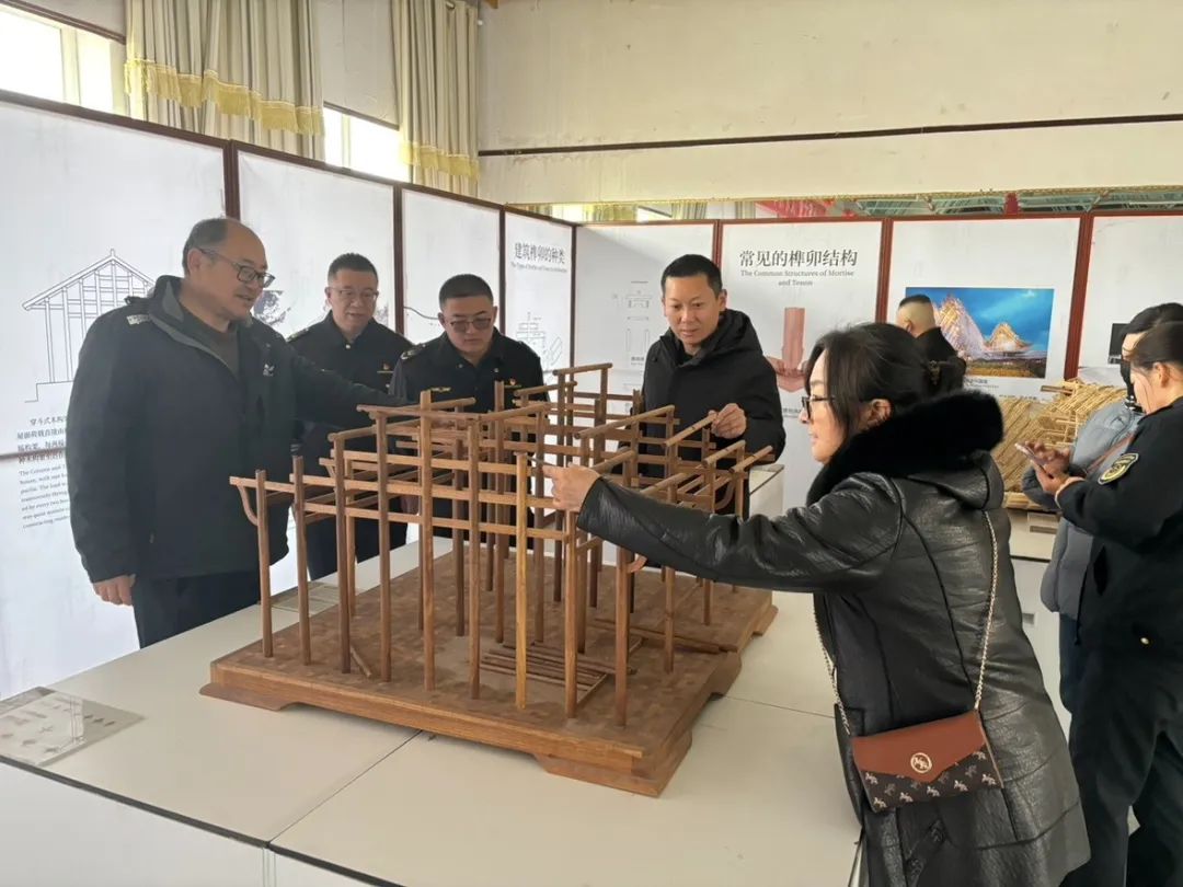 在参观过程中,敦煌市第二中学张森茂同志给干部们细致地讲解了建筑榫卯的种类、抬梁式木构架、穿斗式木架构等。榫卯是古代中国建筑、家具及器械的主要结构方式,是在两个构件上采用凹凸部位相结合的一种连接方式。榫卯技艺凝聚了中国人追求完美、精益求精的工匠精神,创造出了悬空寺“屹立不倒”的奇迹。