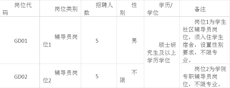 3.专职辅导员招聘由学校人事处、学生工作部(处)、纪委监察室、各学院等相关部门组成选聘小组负责招聘工作。