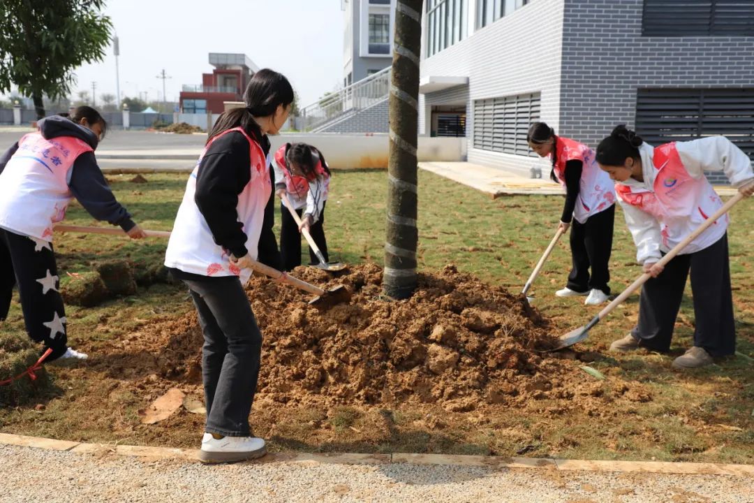 恰逢一年春好处,植树造林正当时。为树立“植绿、护绿、爱绿、兴绿”的绿色文明新风,共建共享美丽校园,2024年3月12日,在我国第46个植树节到来之际,我校组织师生共同开展植树活动,以实际行动践行绿水青山就是金山银山的理念。学院党委副书记、院长朱海强出席活动并讲话,学院党委委员、纪委书记覃丽燕,学院党委委员、副院长、宣传部部长梁杰参加活动。