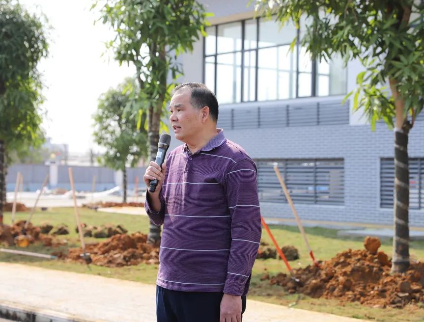 朱海强表示,我校的发展得到政府和师生的高度认可,在全体师生的共同努力下,校园的绿化取得了显著的成果,校园增添了无尽的生机与活力,我们要以饱满的热情、昂扬的斗志投入到植树活动中,为校园增添一片新绿,培养绿色环保的理念,参与生态文明建设,推动绿色校园建设,争做文明使者。