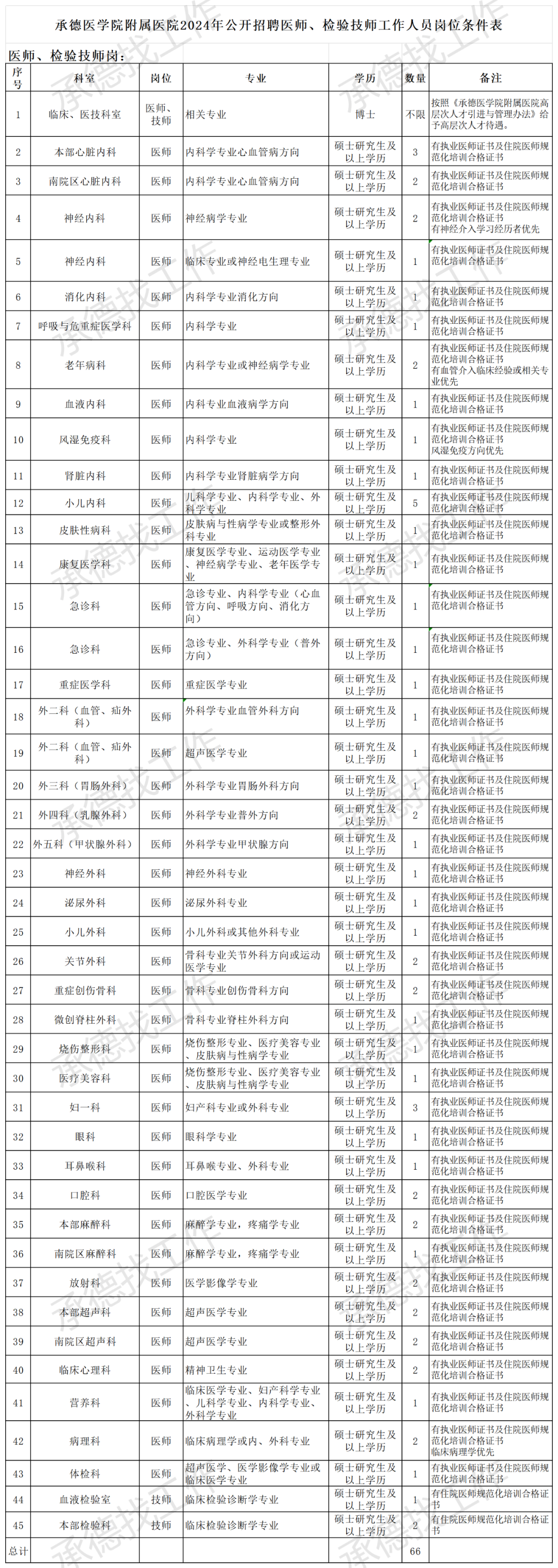 附件下载:承德医学院附属医院2024年公开招聘医师、检验技师工作人员岗位条件表