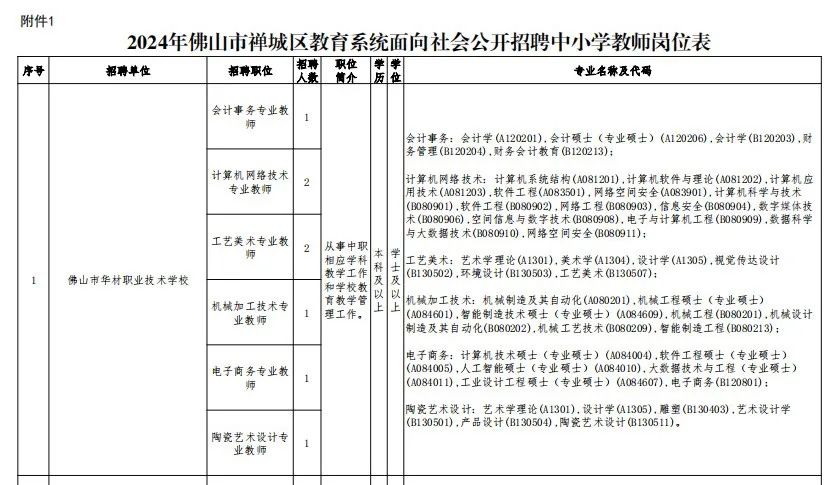 附件1:2024年佛山市禅城区教育系统面向社会公开招聘中小学教师岗位表.pdf