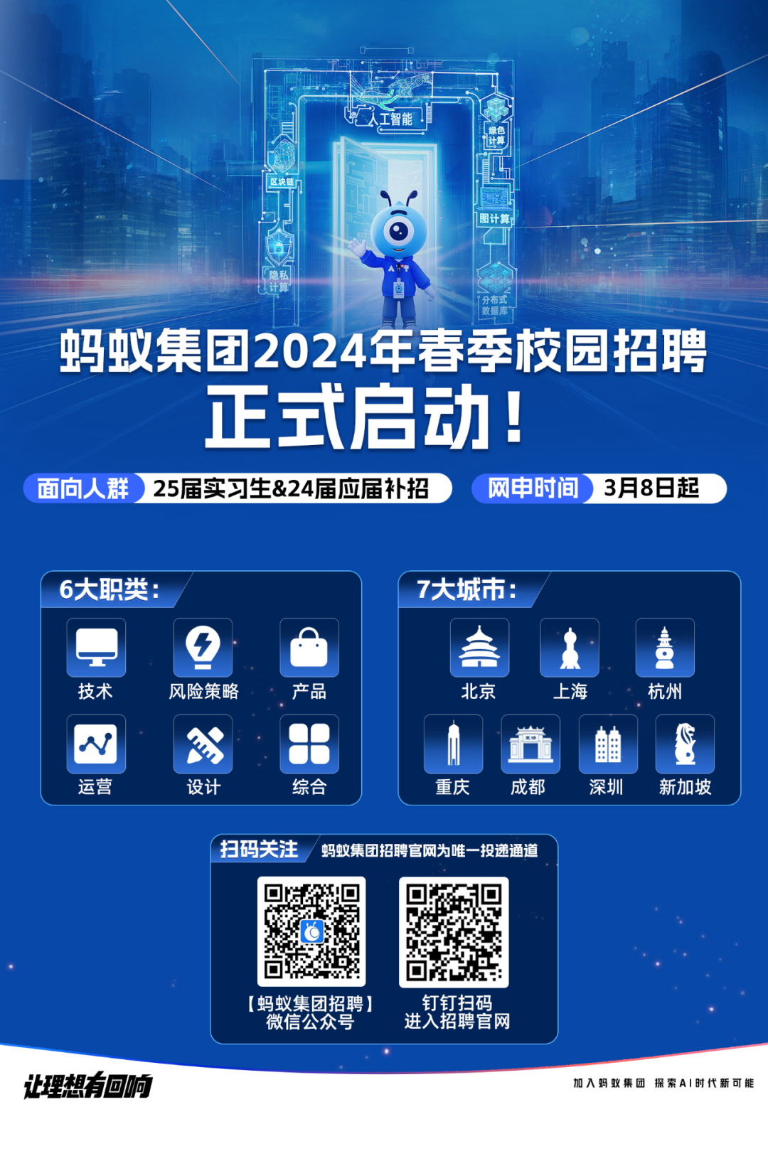 同学们,往这看!蚂蚁集团 2024 年春季校园招聘正式启动。