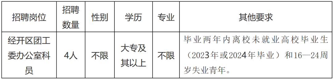 共青团张家口经开区工委招聘4名就业见习岗位人员的公告 为进一步帮助高校毕业生、失业青年等青年群体积累社会实践经验,增强就业竞争力,根据《河北省高校毕业生就业见习基地管理办法》、《张家口市青年就业见习三年计划实施方案》等文件精神,现将共青团张家口经开区工委就业见习岗位及相关事宜通知如下:
