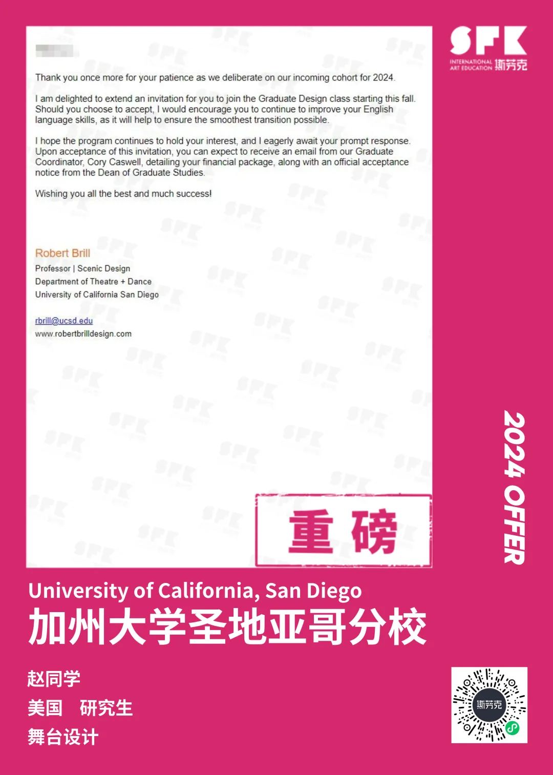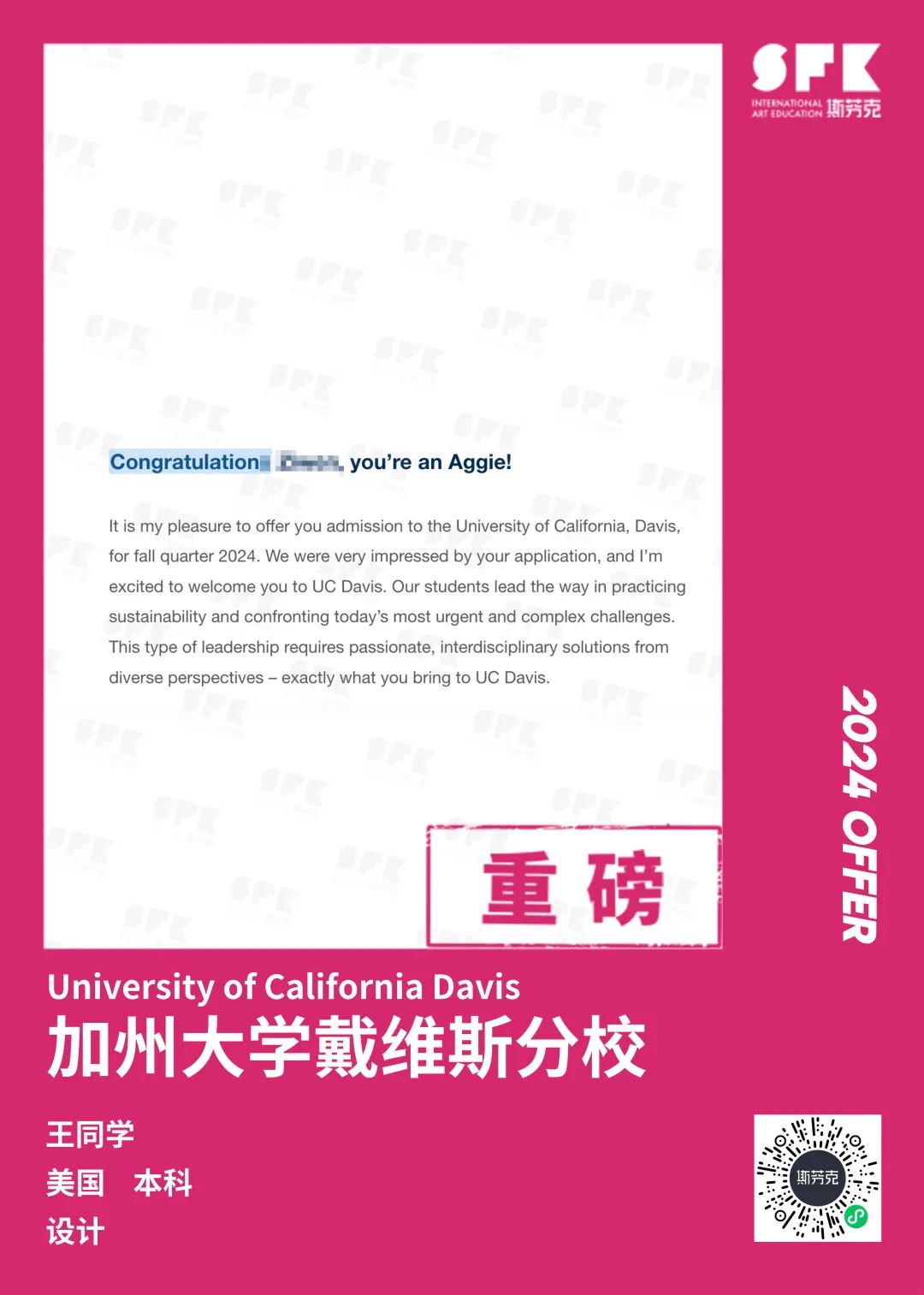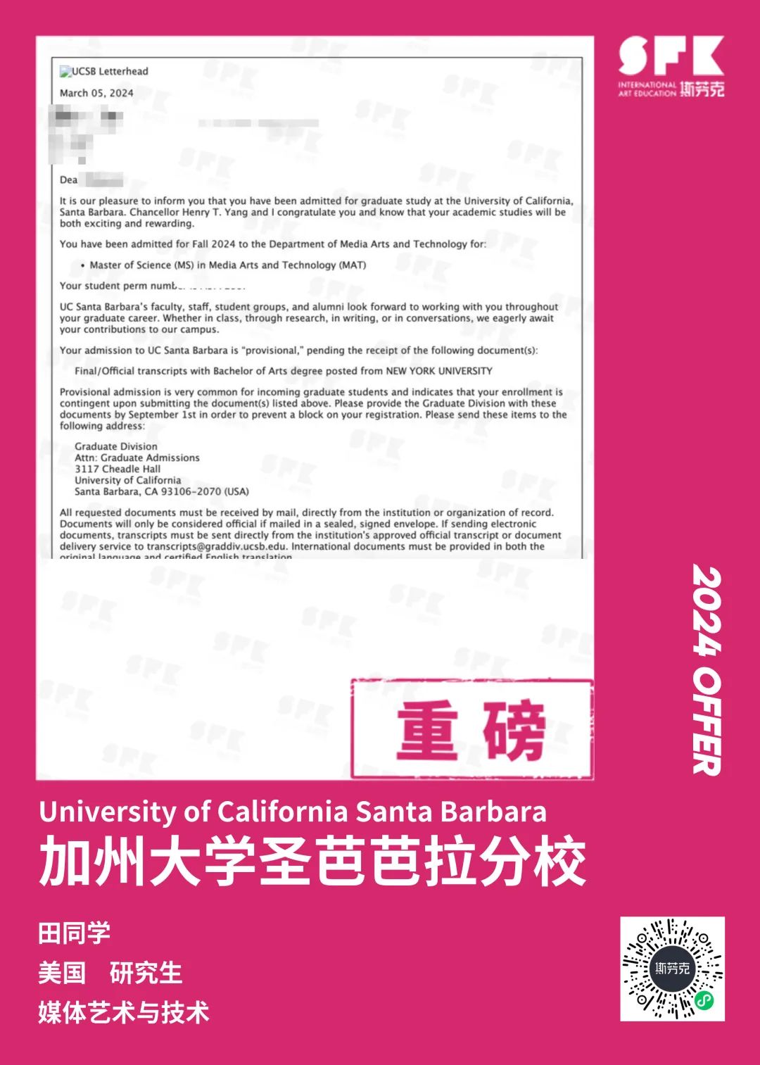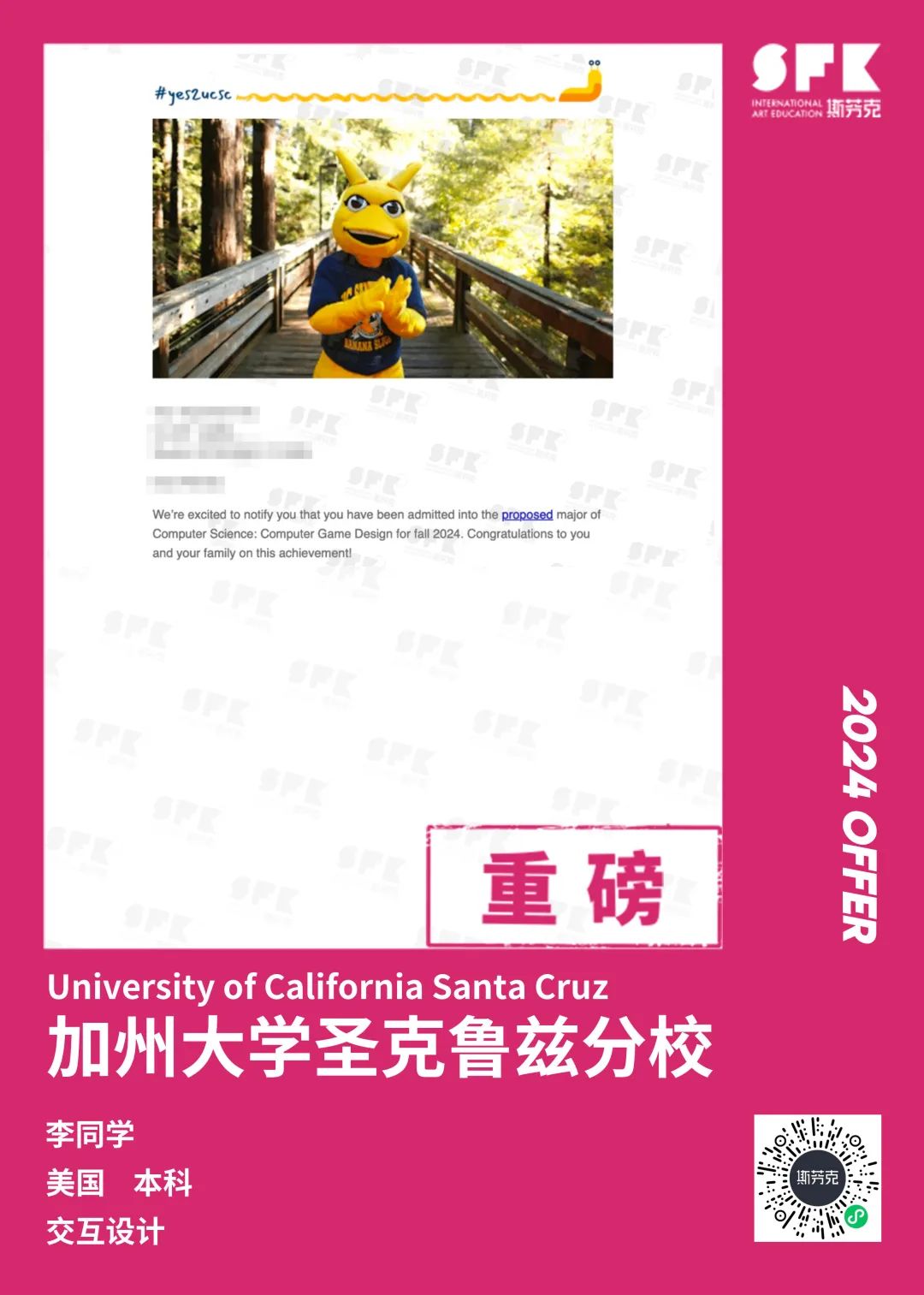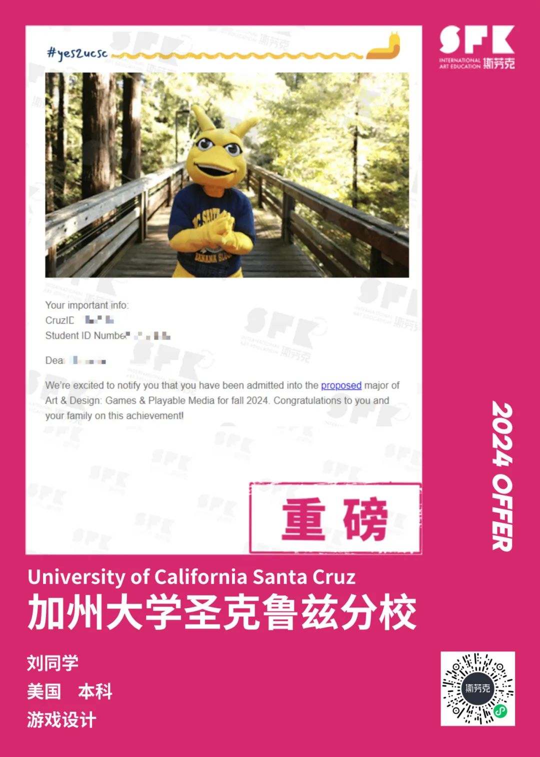 上周末迎来加州大学戴维斯分校、加州大学尔湾分校放榜,两所院校艺术设计相关专业非常丰富,斯芬克同学录取专业包含电影制作、纯艺(雕塑)、综合设计、音乐学等等。