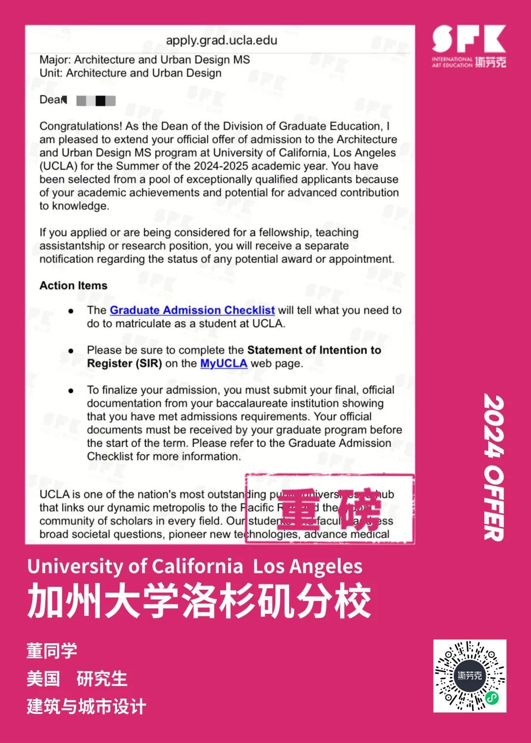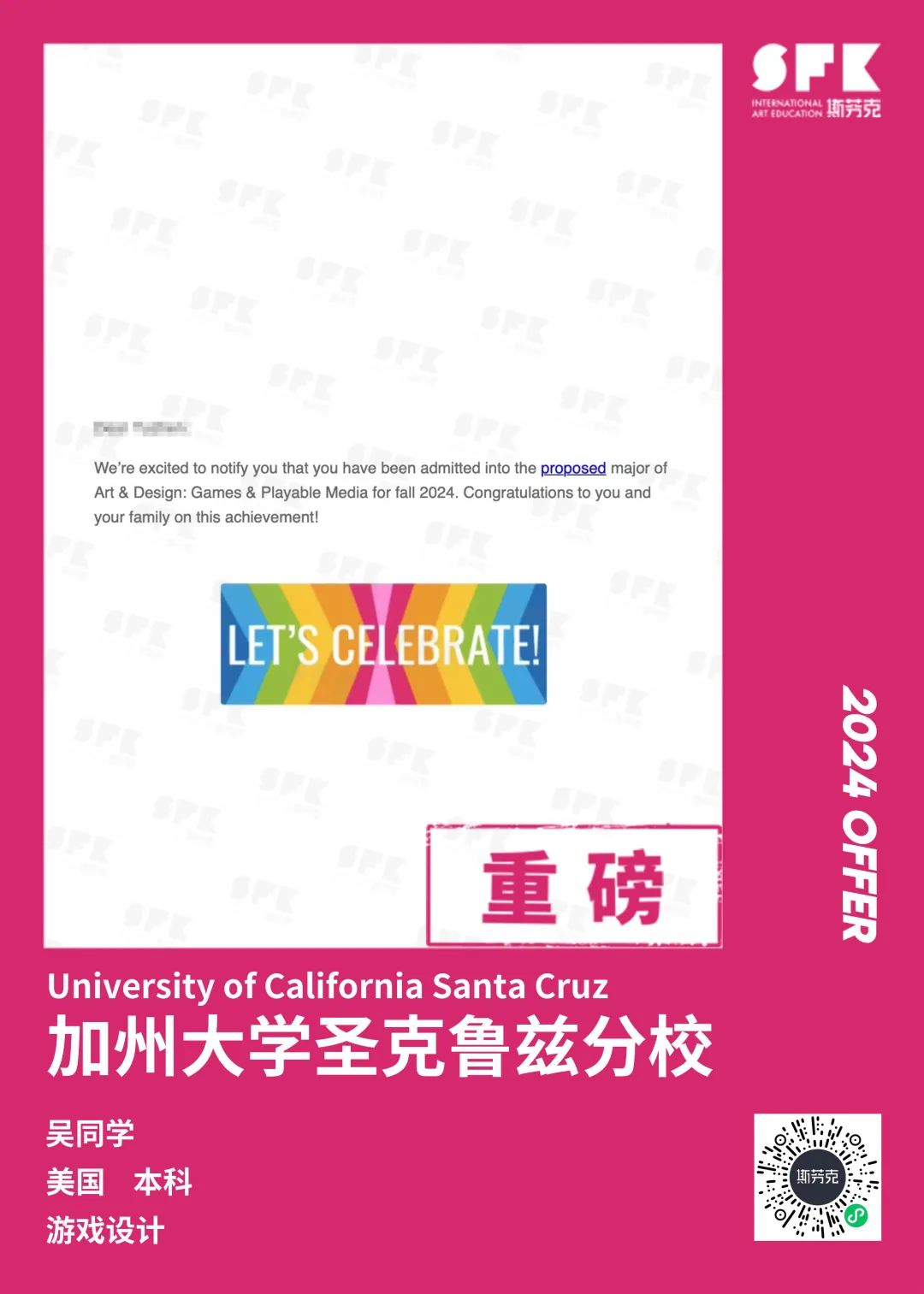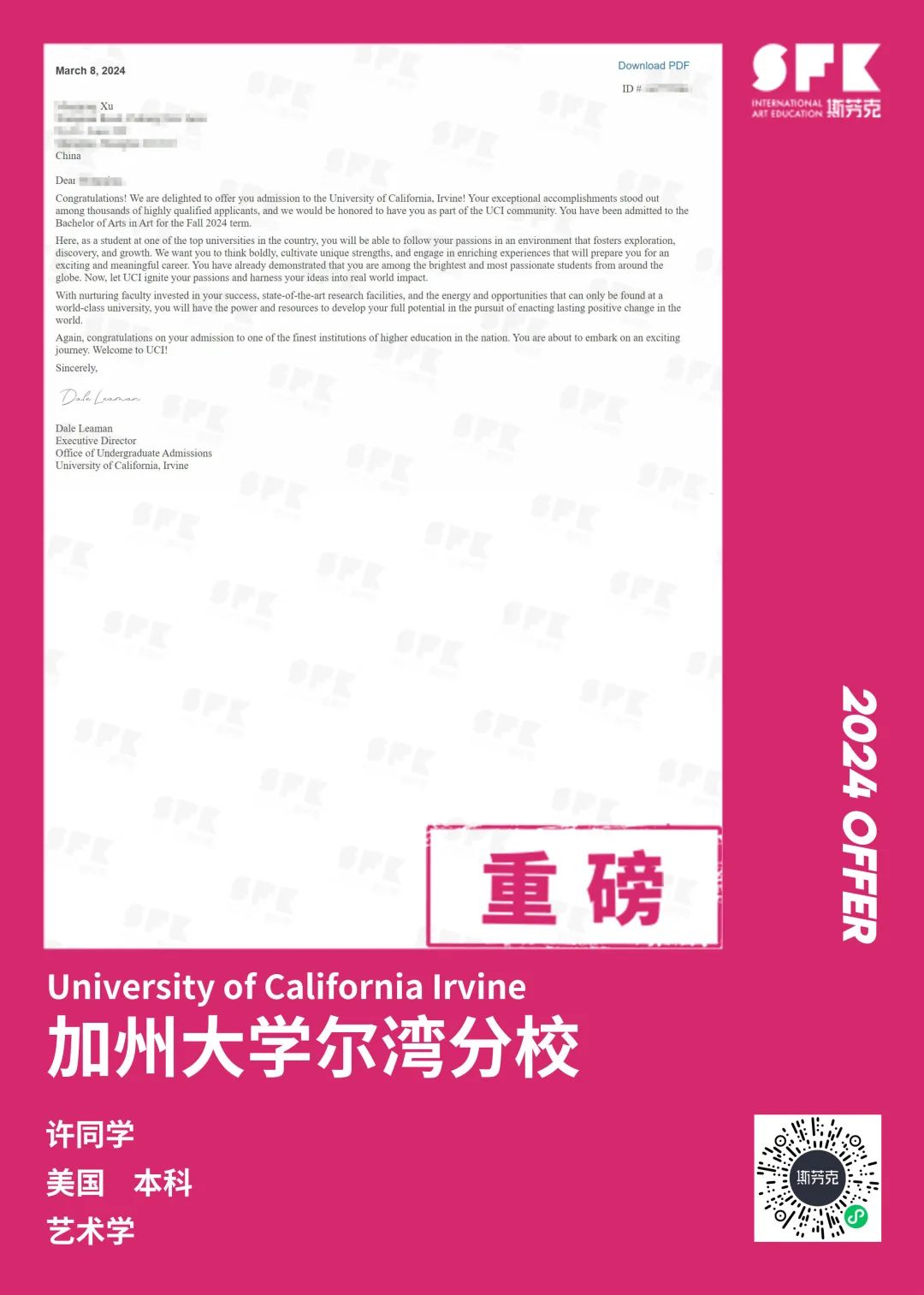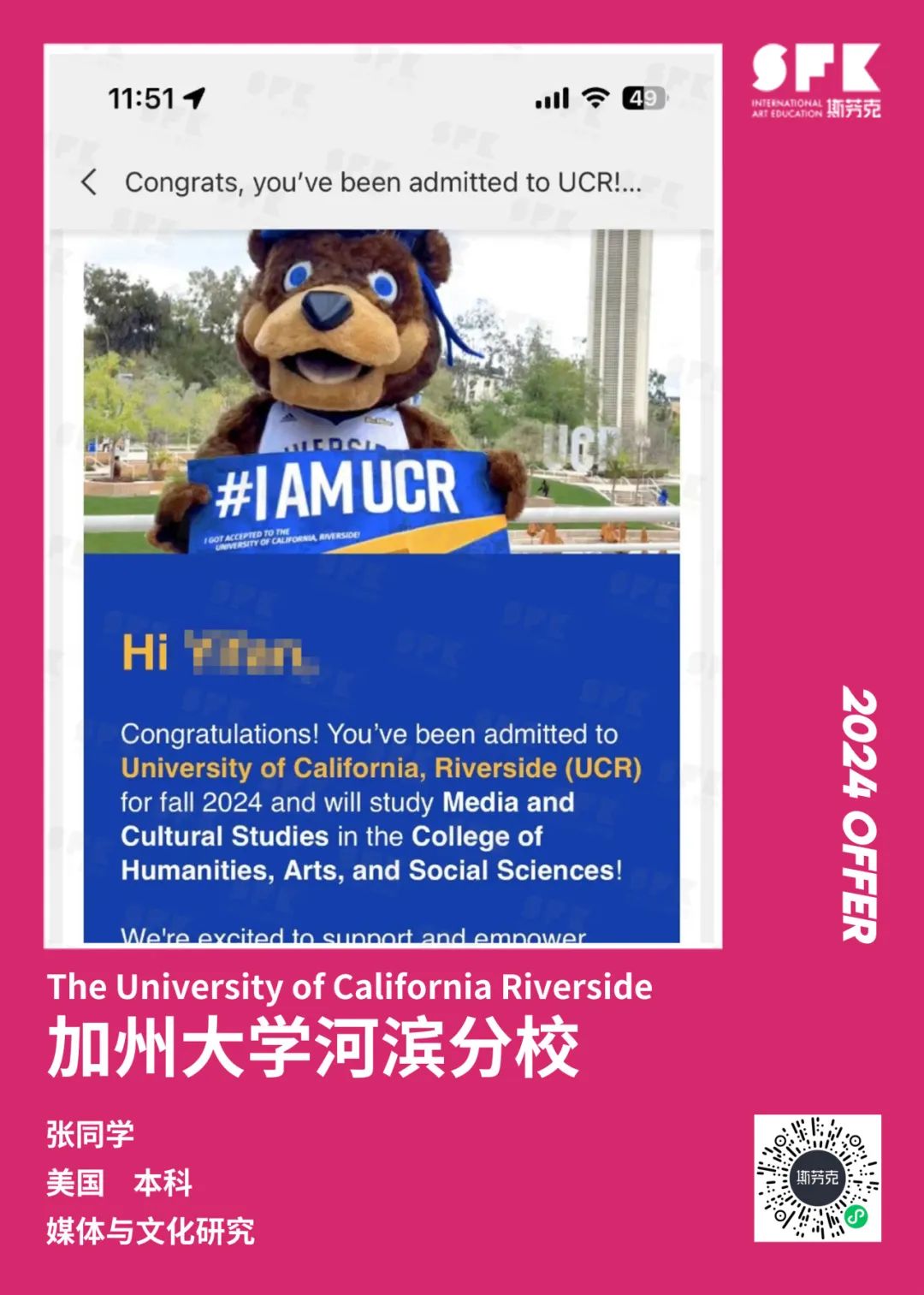 上周末迎来加州大学戴维斯分校、加州大学尔湾分校放榜,两所院校艺术设计相关专业非常丰富,斯芬克同学录取专业包含电影制作、纯艺(雕塑)、综合设计、音乐学等等。