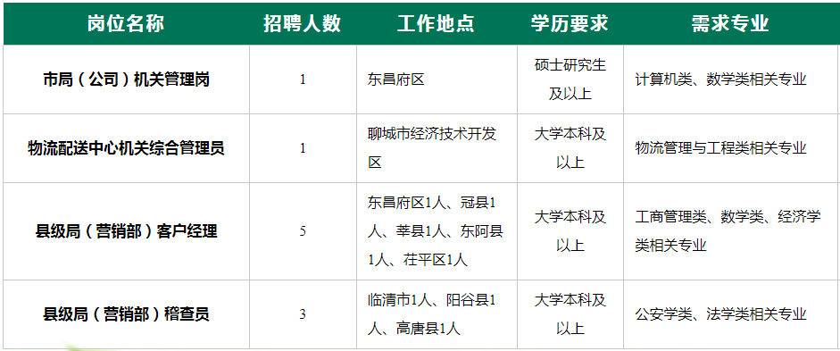临清有岗!山东省烟草专卖局(公司)公开招聘
