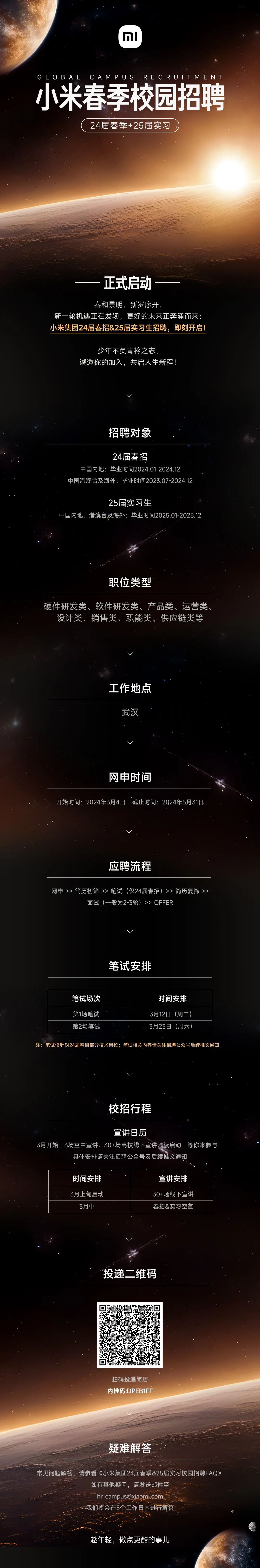 >招聘推荐 | 小米集团24届春招&25届实习校园招聘正式启动