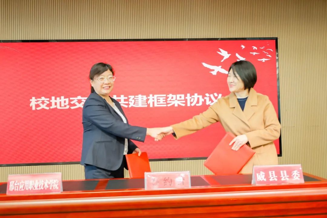 就学校未来发展与大家共勉三点要求:一是坚持正确的办学方向。努力把学校建设成为有实力、有活力、有魅力、特色鲜明的应用技术职业高校;二是紧扣时代发展脉搏,有效推动技术链、创新链、产业链、人才链“四链”协同发展。三是深入推进校地合作,聚焦威县的产业发展、乡村振兴等领域,努力开创校企合作共赢新局面。