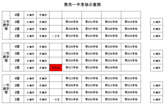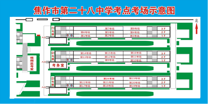 2.此次笔试焦作市设置考点较多,为确保笔试工作顺利进行,请报考者务必提前查询交通路线,合理安排路途时间,严格按照准考证上显示的时间和地点,考试当日于开考前50分钟到达考点。