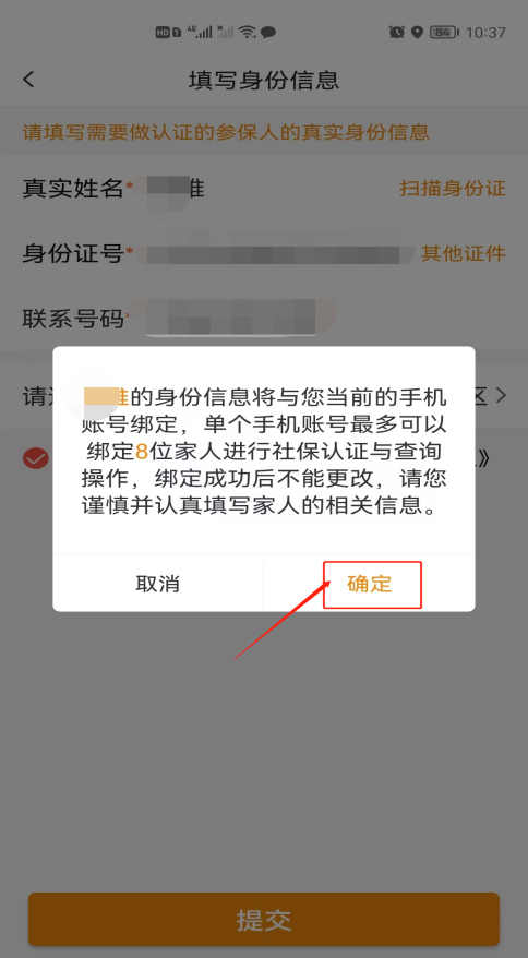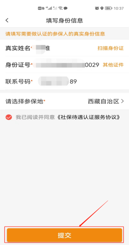 5.录入参保人姓名、身份证号(可点击右侧“扫描身份证”读取人员信息)、联系电话,然后点击下方“提交”按钮,如图:7.为了方便认证操作,如是本人认证,请选择前置摄像头,若是替他人认证,请选择后置摄像头:8.在人脸采集页面中,请保持人脸在识别框内,并按照提示做张口、摇头、眨眼等动作,如图:附件2