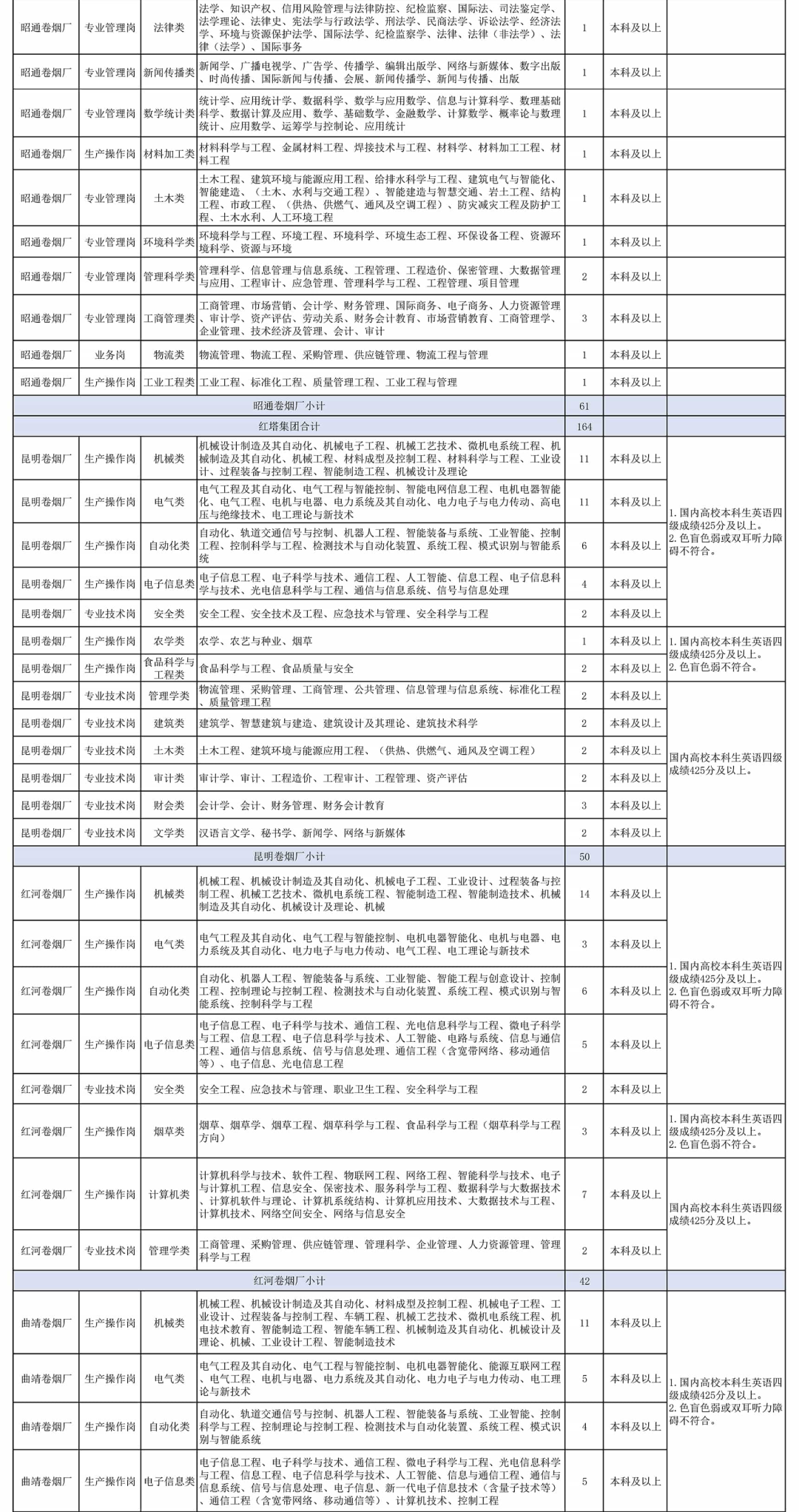 5.符合《云南中烟2024年毕业生招聘计划表》设置的专业、学历、外语等要求,具备与招聘岗位相匹配的能力和素质;