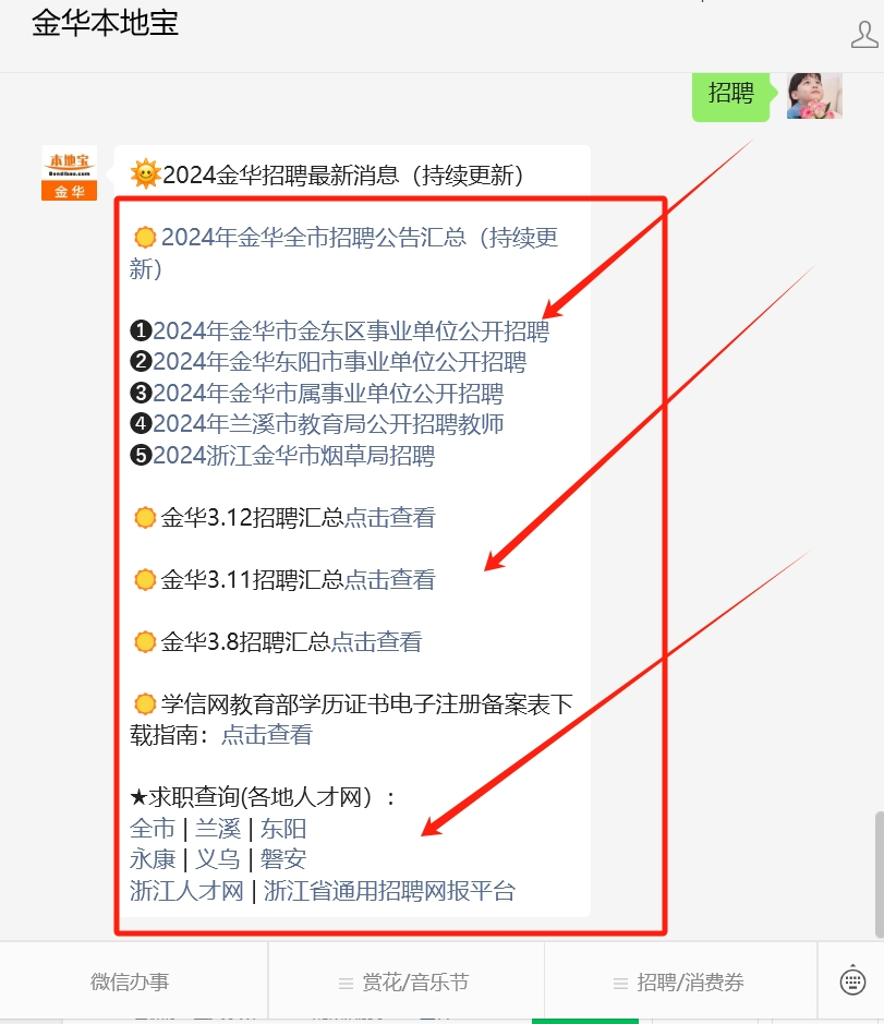 回复【招聘】即可获取金华2024最新招聘岗位及入口