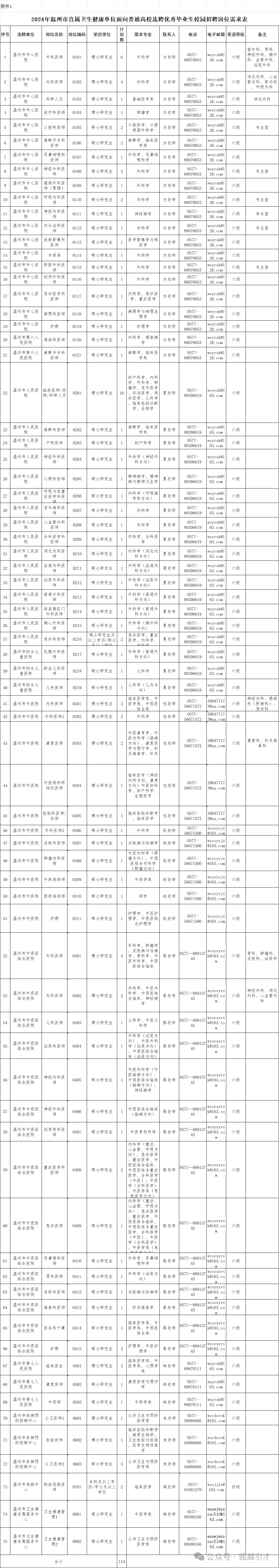 为全面实施“人才强卫和科技创新”首位战略,进一步加强我市高质量医疗卫生健康人员队伍建设,引进、培养一批卫生健康事业发展所需的优秀人才,为全力打造辐射东南沿海医疗高地、推进卫生健康现代化先行市建设提供强大人才支撑和智力支持。经研究,由温州市卫生健康委员会联合温州市人力资源和社会保障局面向普通高校选聘优秀毕业生114名。现将有关事项公告如下: