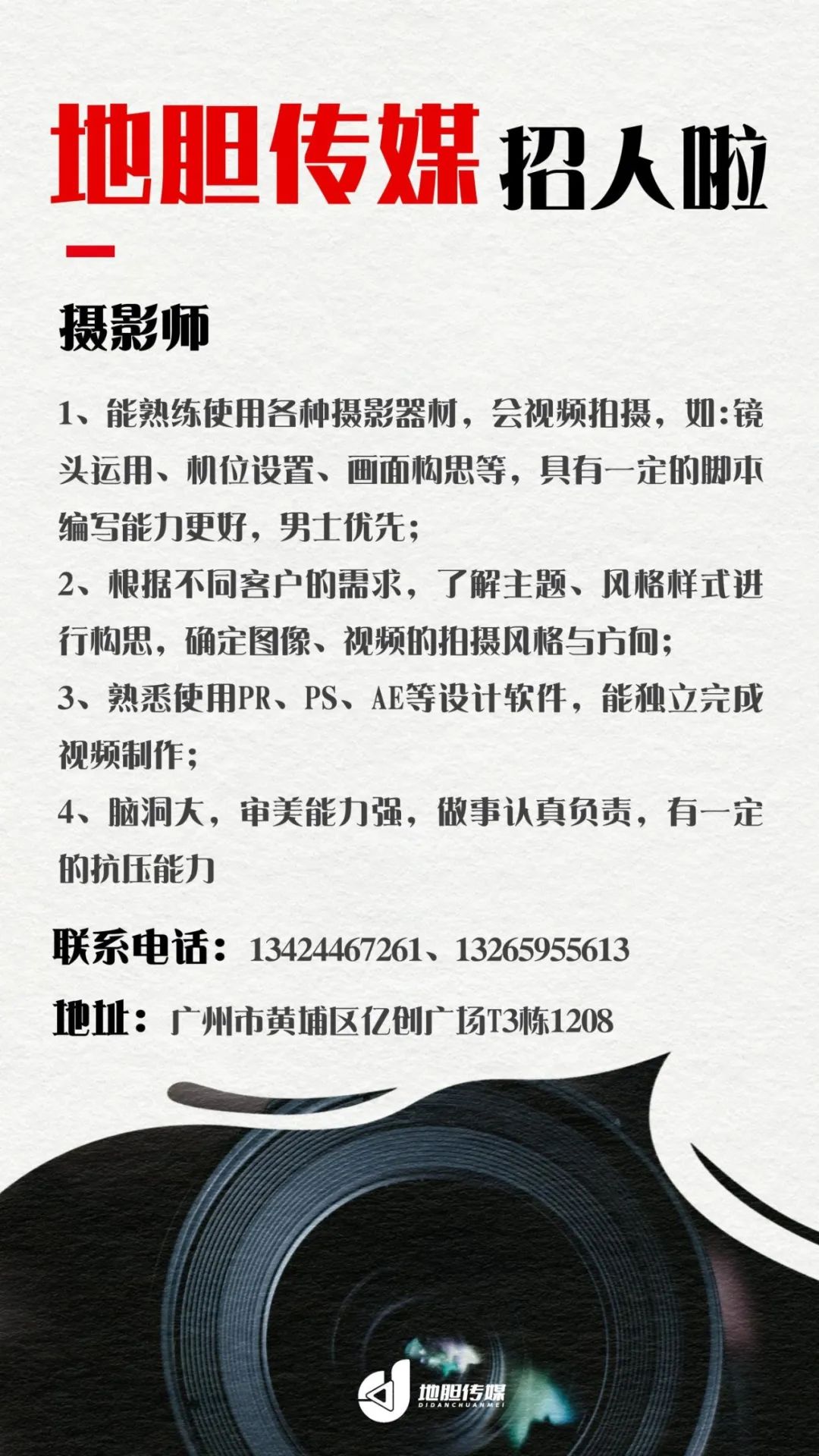 1、能熟练使用各种摄影器材,会视频拍摄,如:镜头运用、机位设置、画面构思等,具有一定的脚本编写能力更好,男士优先;