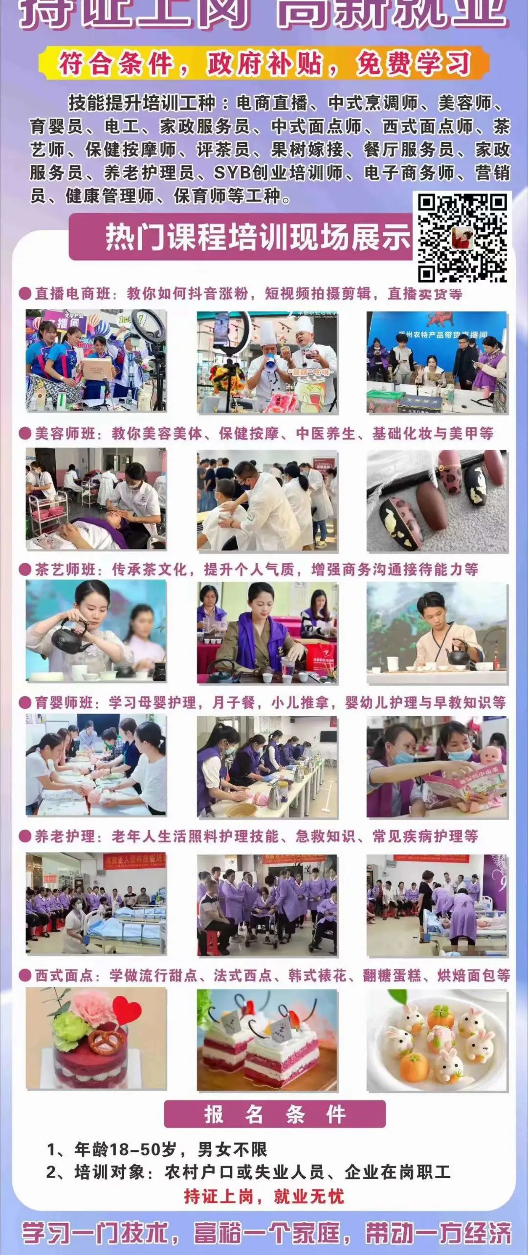 育婴师,保育师,电工,电商直播,农村户口或失业人员可以免费学
