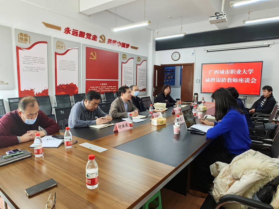 座谈中,离退休处处长于险波代表学校对广西城市职业大学的来访表示热烈欢迎。离退休人员党委书记李平介绍了我校落实《国家银龄教师行动计划》方面的相关工作。梁华廉副校长详细介绍了该校的基本情况、教育教学改革等方面的进展。他表示,广西城市职业大学非常重视银龄教师的招聘工作,今年2月发布《广西城市职业大学2024年面向全国诚聘银龄教师公告》,希望诚聘相关学科专业领域的优秀退休教师,助推学校职业本科教育试点建设,助力国家职业本科改革试点工作的推进。双方就组织老同志继续发挥优势作用、银铃教师工作内容及相关待遇等事项进行了深入交流。参会的退休老教师现场与梁校长一行进行了沟通交流,就有关意向达成一致意见。