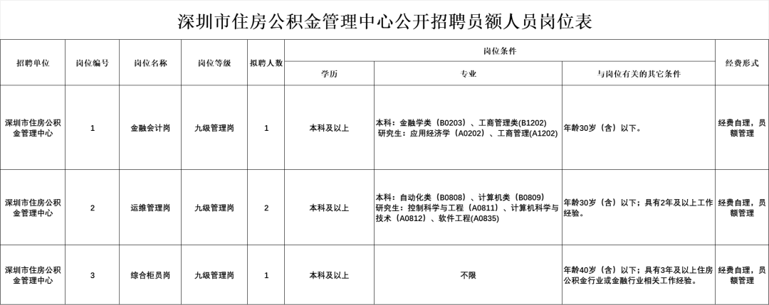 【南山招聘】好机会,深圳市住房公积金管理中心招聘员额人员!部分专业不限,综合柜员、金融会计等岗位,今日起报~