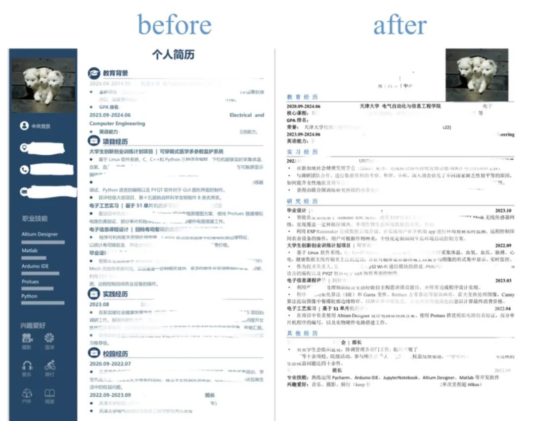 涉及隐私信息(如绩点、课程信息等)时,可以自行添加在预留位置。