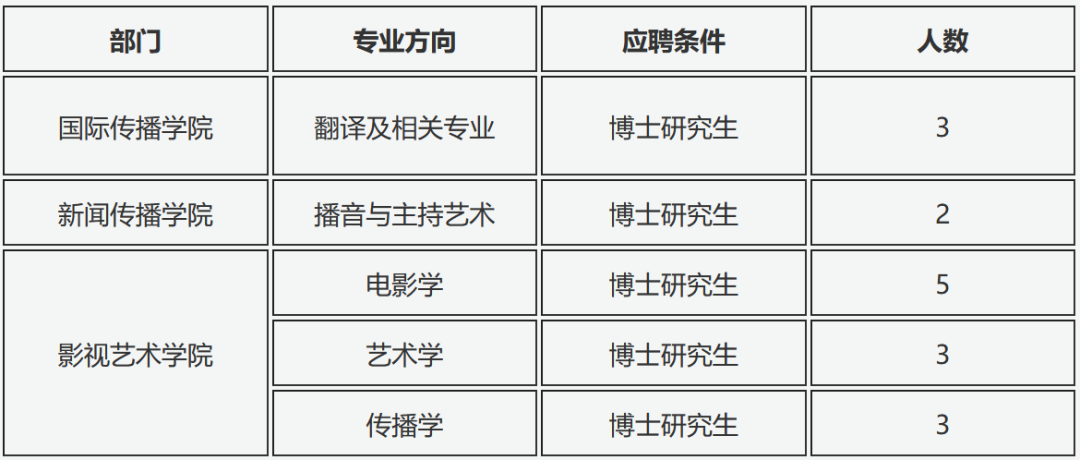 点击上方名片关注“河北163公务员考试网”,查看河北省各地市公务员最新招聘信息。建议置顶标星~有疑问,请加微信:hbrsksw8。如需交流,请加QQ群:528479976。 河北传媒学院2023-2024学年招聘132人计划一、招聘岗位及条件 1、学科带头人及后备人才招聘 2、教师招聘 点击上方名片关注,单独查看石家庄市招聘信息 二、报名办法 凡有意报名应聘者,可将个人简历通过E-mail,邮件标题格式:姓名+应聘部门+应聘岗位。(应聘教师岗位需本科与硕士研究生所学专业一致)点击查看更多招聘信息 E-mail:hbcmrs@163.com |